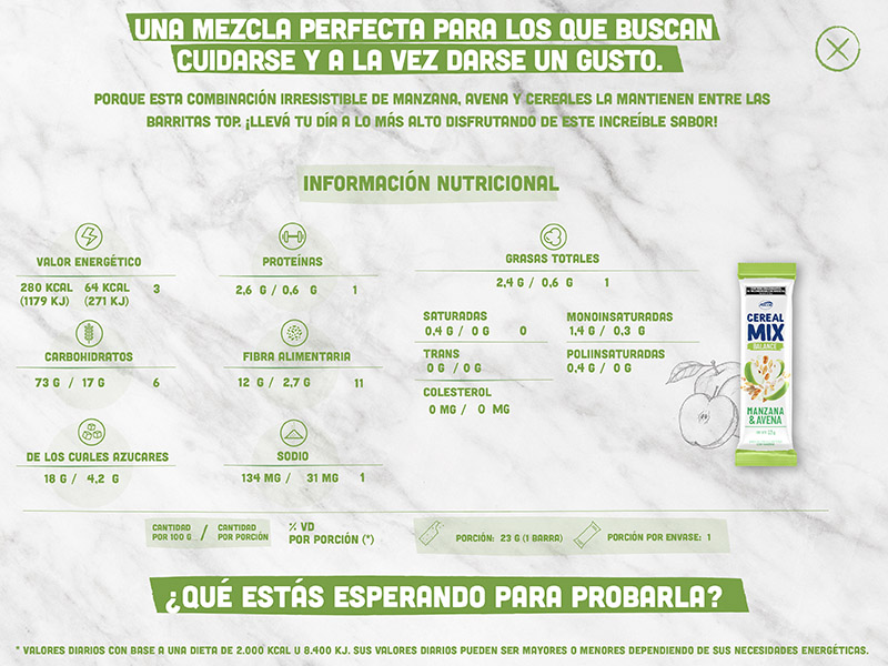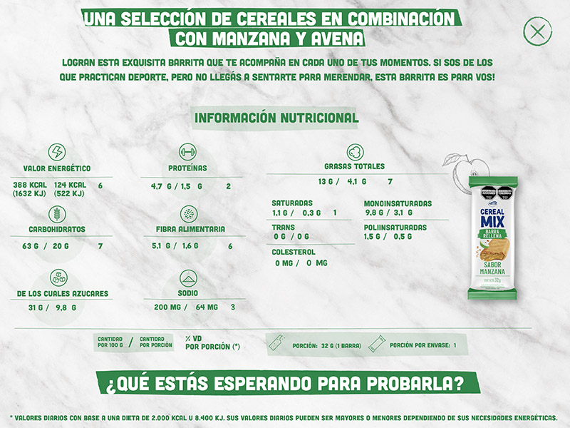Hace click para conocer la información nutricional